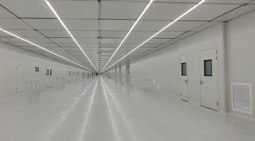 根據《潔淨廠房設計規範》車間的牆體和吊頂必須采用不產塵、不積塵表麵平滑的材料施工,並且不能在車間中存在死角。采用榴莲视频在线观看污廠房施工專用彩板,基板頂板采用寶鋼0.4的鋼板,芯材密度達到14kg/m3,鋁材采用華聯專用鋁型材,為提高榴莲视频在线观看污間的使用壽命,並達到美觀大方的效果,所有鋁型材進行電泳處理。
